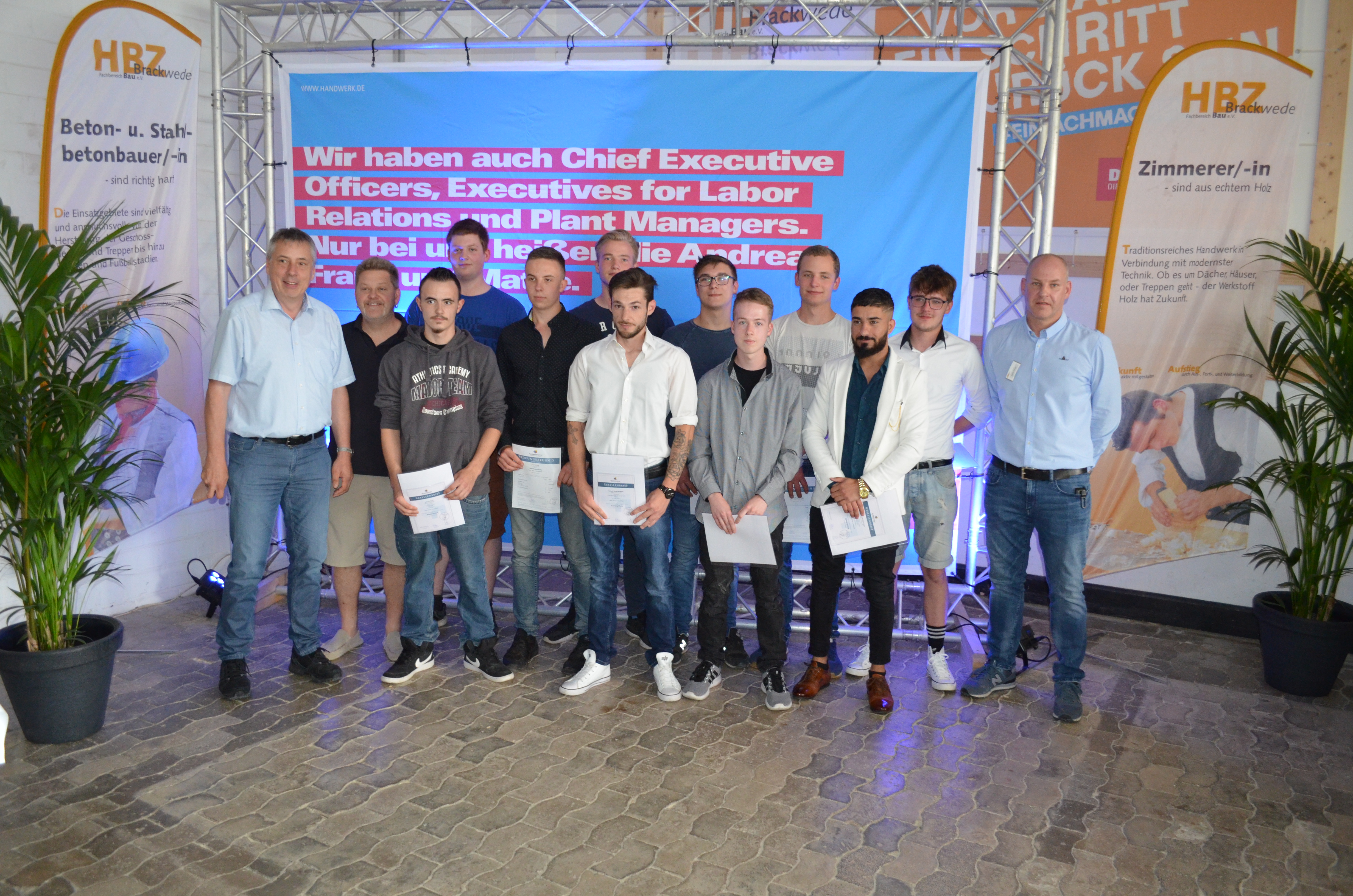 119 junge Zimmerer, Maurer, Straßenbauer, Beton- und Stahlbetonbauer, Stuckateure sowie Fliesen-, Platten- und Mosaikleger haben im Handwerksbildungszentrum Brackwede (HBZ) ihren Freispruch erhalten und beenden damit ihre Ausbildung.