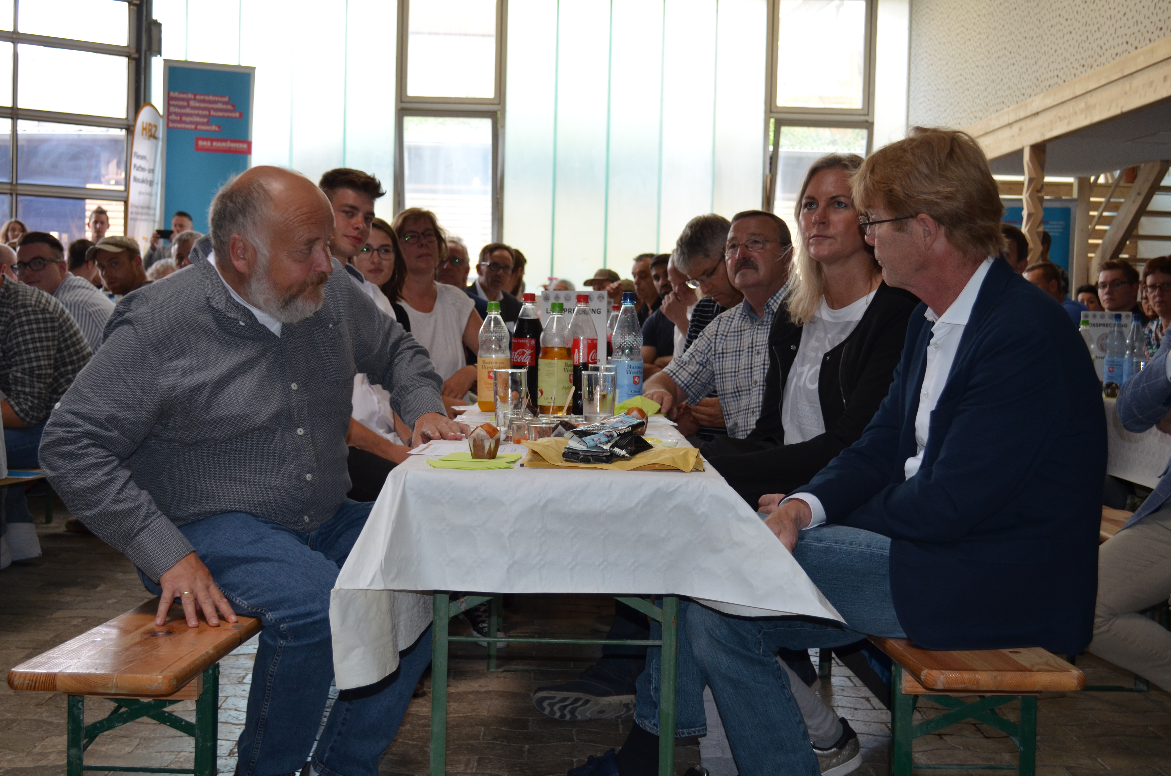 Dieses Jahr wurde die Lossprechungsfeier wieder durch Akteure der "Promotion Tour zum Aufstiegs-BAföG" bereichert. Als eine von fast 100 Stationen in 2019 wurde das HBZ Brackwede als Fachschule ausgewählt - ein Vor-Ort-Team ehrte die Jahrgangsbesten. Darüber hinaus erhielten alle Junggesellen sowie interessierte Besucherinnen und Besucher Informationsmaterial und Give-Aways. (Mit der Aufstiegs-BAföG-Tour will das Bundesministerium für Bildung und Forschung mehr Bewusstsein für die Möglichkeiten der beruflichen Bildung schaffen. Junge Menschen sollten bereits bei ihrer Berufswahl zur dualen Ausbildung mit ins Auge).