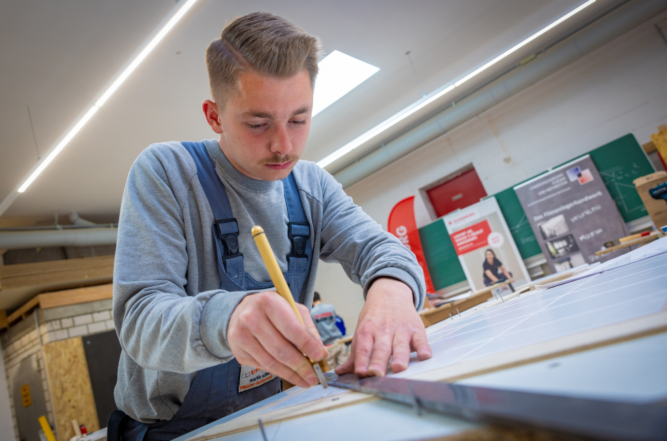 Lernen vom Weltmeister: Geleitet wurde der Kurs von einem echten Profi: Martin Schmalhorst, Fliesenleger-Weltmeister von 2003, zeigte Schritt für Schritt, wie man ein Werkstück richtig aufzeichnet, Teile überträgt und präzise zuschneidet. Seine Erfahrung ist Gold wert – und kommt bei den Azubis super an. Einer von ihnen ist sein eigener Lehrling, Tim Strate (19): „Am schwersten sind die Ecken – da braucht man echt Geduld und Fingerspitzengefühl.“